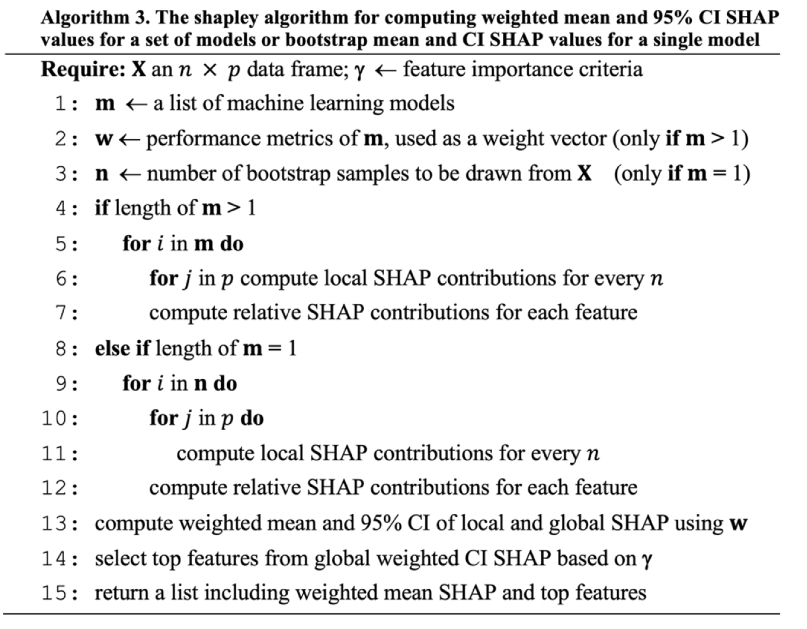 SHapley Additive exPlanations (SHAP) estimate each feature’s marginal contribution. HMDA uses shapley refines SHAP by weighting each model’s feature-importance scores by the model’s predictive performance (e.g., accuracy, AUC). This generates confidence intervals around ensemble-level importance estimates.