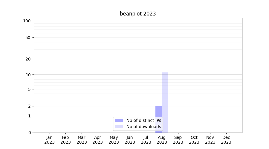 Number of downloads for software package beanplot, year by year, from 2025 back to 2014 (years with no downloads are omitted):