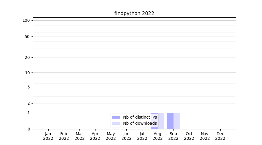 Number of downloads for software package findpython, year by year, from 2025 back to 2014 (years with no downloads are omitted):