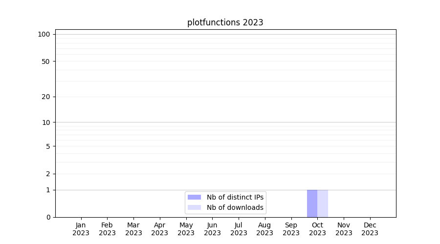 Number of downloads for software package plotfunctions, year by year, from 2025 back to 2014 (years with no downloads are omitted):