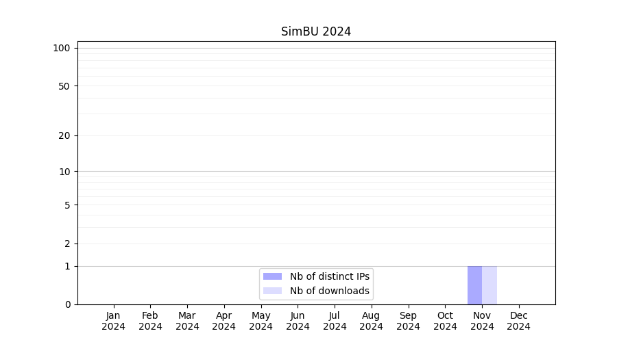 Number of downloads for annotation package SimBU, year by year, from 2025 back to 2014 (years with no downloads are omitted):