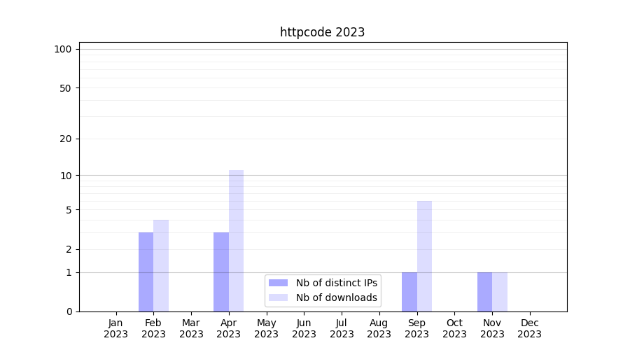 Number of downloads for annotation package httpcode, year by year, from 2025 back to 2014 (years with no downloads are omitted):