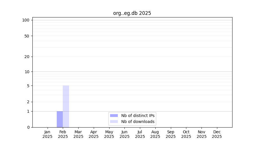 Number of downloads for annotation package org..eg.db, year by year, from 2025 back to 2014 (years with no downloads are omitted):