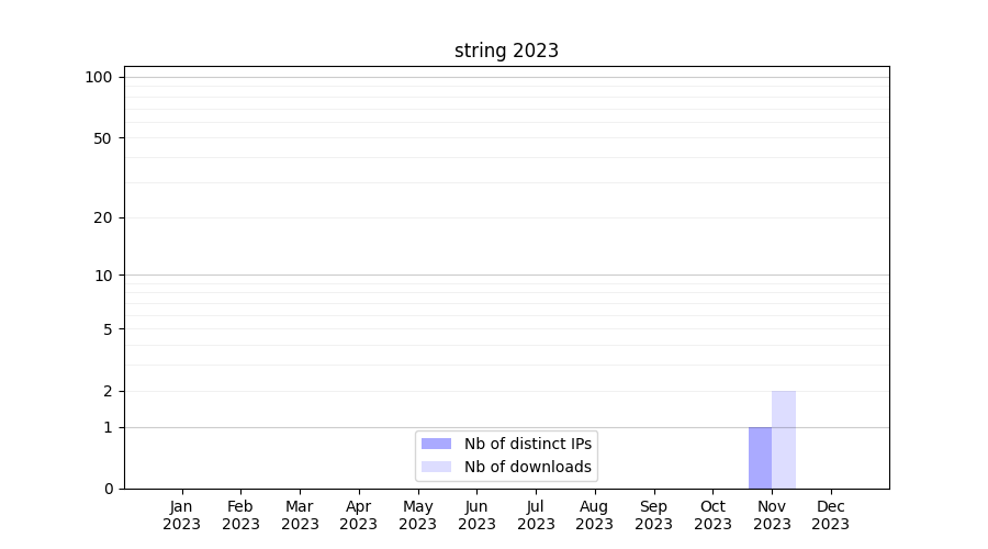 Number of downloads for annotation package string, year by year, from 2025 back to 2014 (years with no downloads are omitted):