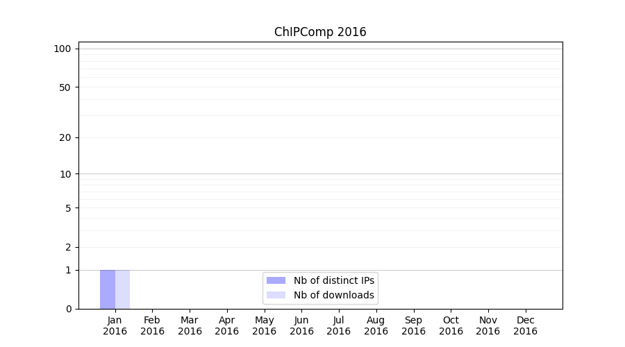 Number of downloads for experiment package ChIPComp, year by year, from 2025 back to 2014 (years with no downloads are omitted):