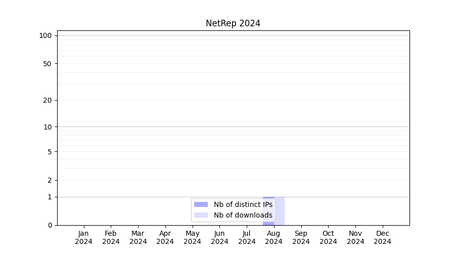 Number of downloads for experiment package NetRep, year by year, from 2025 back to 2014 (years with no downloads are omitted):