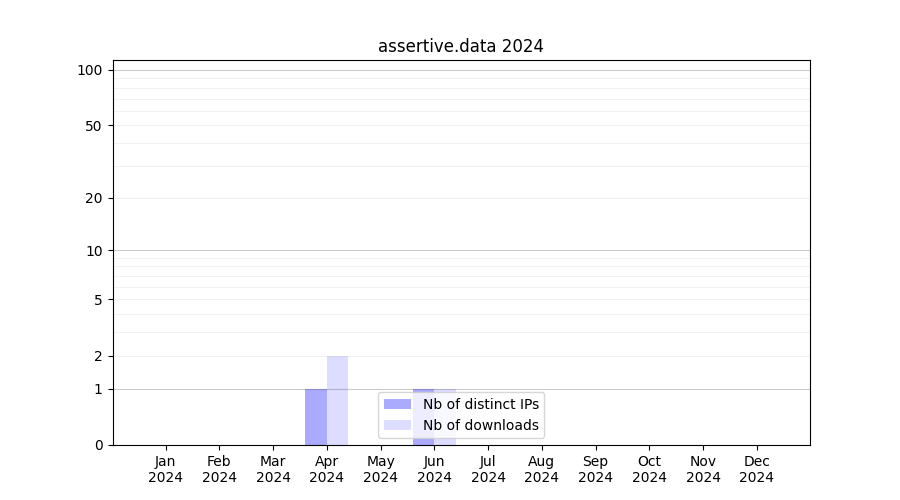 Number of downloads for experiment package assertive.data, year by year, from 2025 back to 2014 (years with no downloads are omitted):