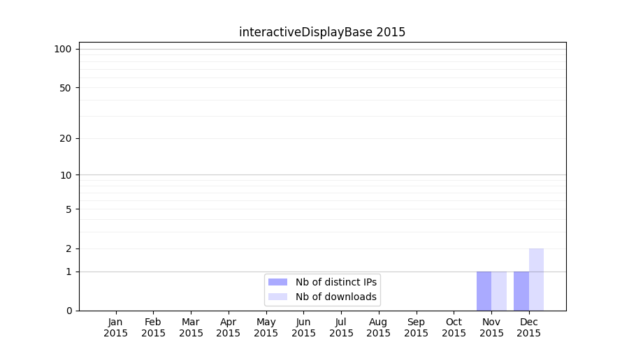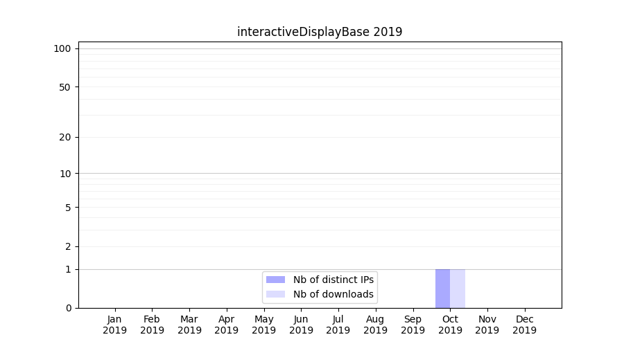 Number of downloads for experiment package interactiveDisplayBase, year by year, from 2025 back to 2014 (years with no downloads are omitted):