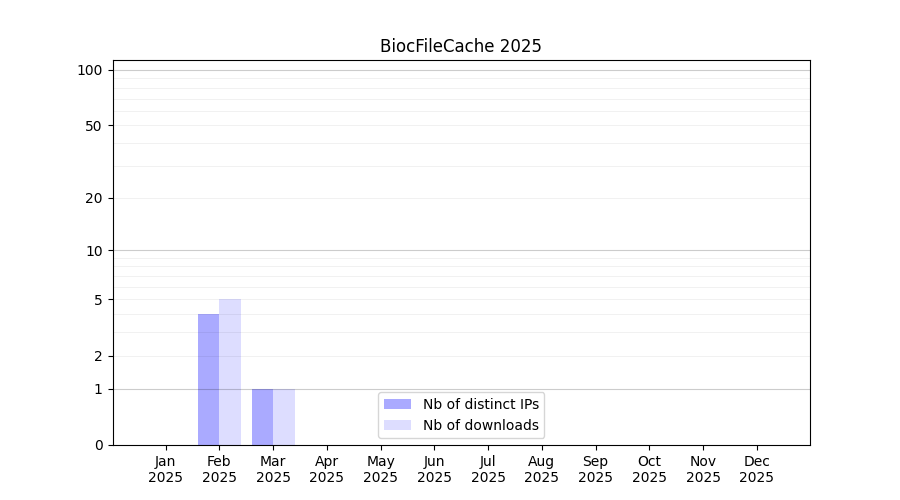 Number of downloads for workflow package BiocFileCache, year by year, from 2025 back to 2015 (years with no downloads are omitted):