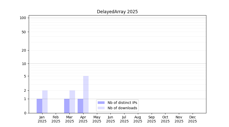 Number of downloads for workflow package DelayedArray, year by year, from 2025 back to 2015 (years with no downloads are omitted):