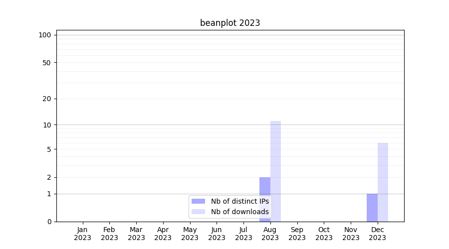 Number of downloads for workflow package beanplot, year by year, from 2025 back to 2015 (years with no downloads are omitted):