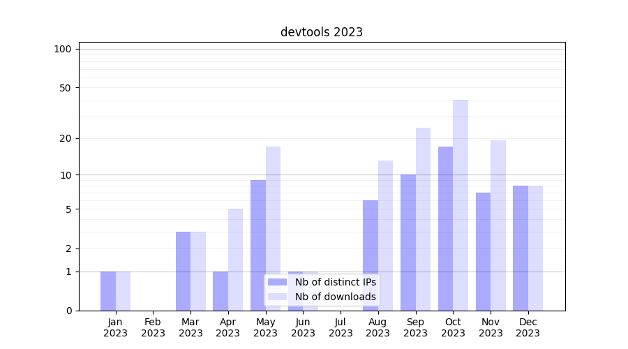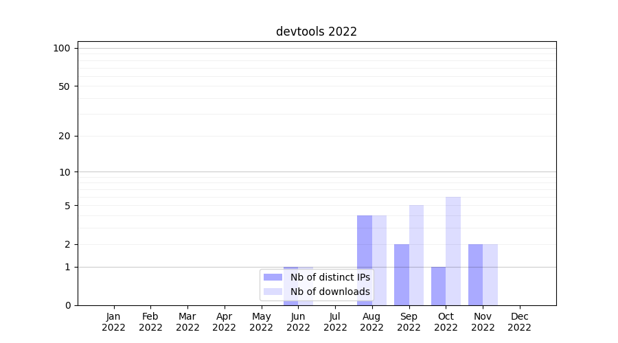 Number of downloads for workflow package devtools, year by year, from 2025 back to 2015 (years with no downloads are omitted):