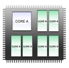 Of these two, the Cell employs the heterogeneous multi-core processor configuration. Instead of conventional multi-application cores, the Cell uses two types of cores optimized for different applications: a large-scale control-intensive processor core that excels in handling frequent thread switching and thus is suited for use with the operating system, and a simple, small-scale compute-intensive processor core that addresses multimedia processing. With this configuration, each core can maintain its processing performance. The core structure can also be simplified drastically.