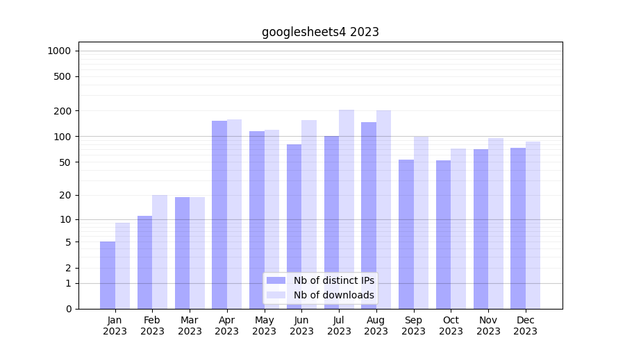 | Month | Nb of distinct IPs | Nb of downloads |